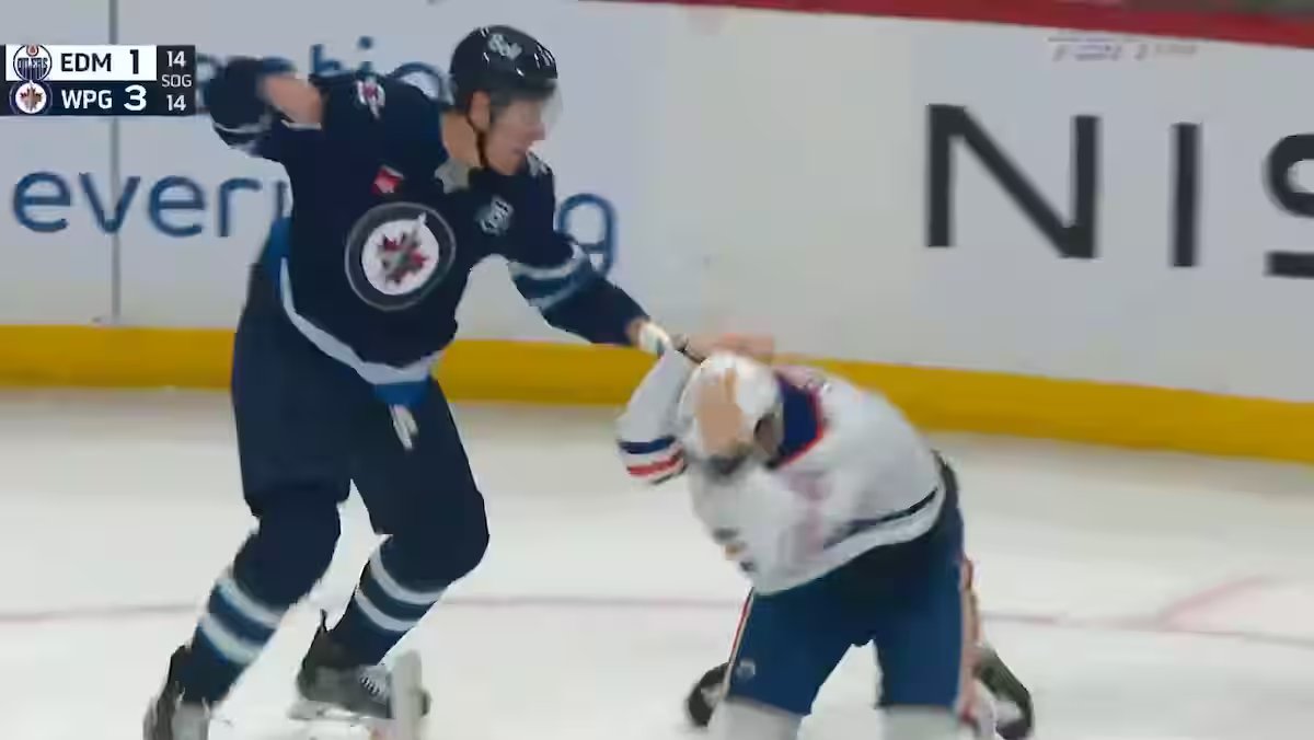 El estado de regreso está en juego contra los Jets de Winnipeg y la elección de provocar al gigante Logan Stanley. En defensa, Frederic a réussi à toucher dos fois son rival en fight singulier, mais il a mis l’ours en colère.