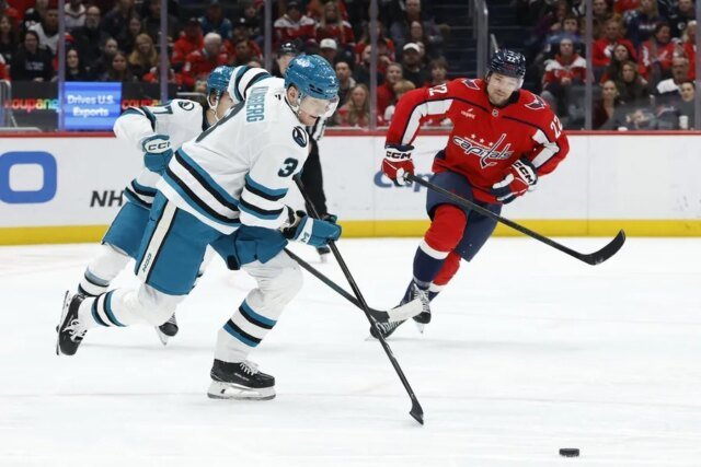 Zack Ostapchuk, Collin Graf y Pavol Regenda anotaron en un lapso de tres minutos en el segundo período, llevando a los San Jose Sharks a una victoria como visitantes por 3-2 sobre los Washington Capitals el jueves.