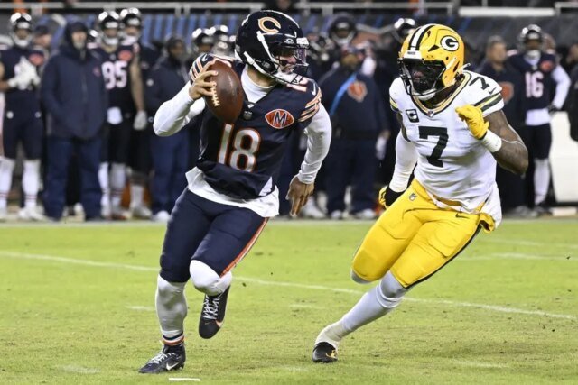 Chicago, que perdía 21-6 al iniciar el último cuarto, se acercó 27-24 con 4:18 restantes con un pase de landing de 8 yardas de Williams a Olamide Zaccheaus y un lanzamiento de conversión de dos puntos a Colston Loveland.