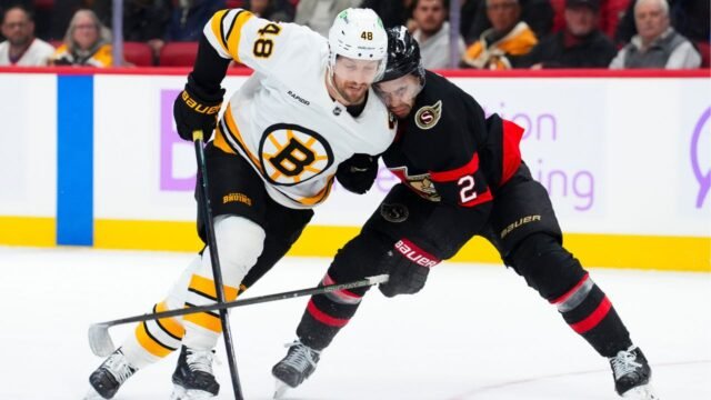 El nativo de Rimouski, Que., tiene tres goles, dos asistencias y 183 minutos de penalización en 64 partidos de la NHL en su carrera con los Bruins y San Jose Sharks.