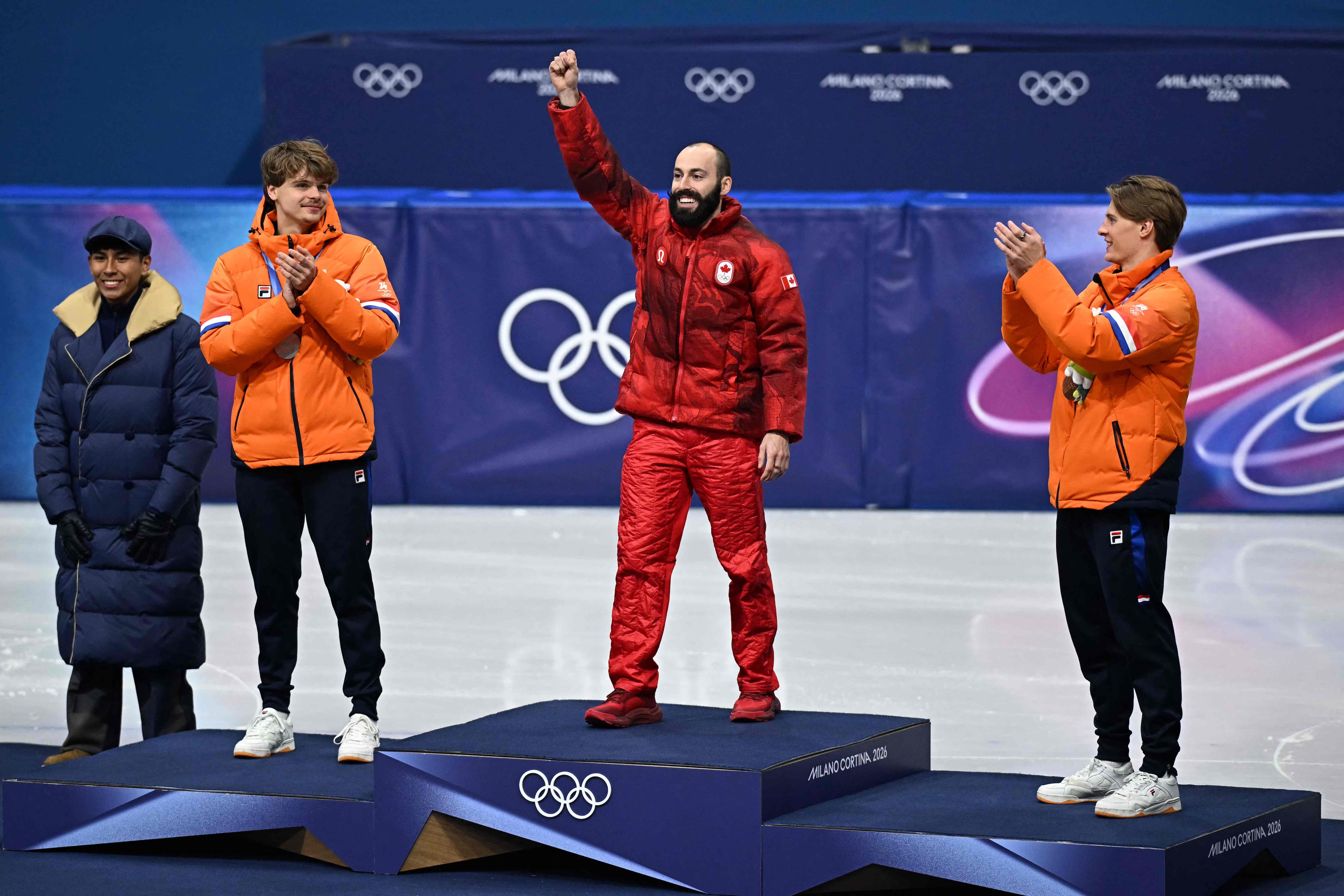 En concoctant une stratégie très osée en finale face à son coéquipier William Dandjinou et à trois Néerlandais, le pari du patineur de vitesse québécois a payé. A través del hijo de llegada, exalté, il a tendu les bras en allant ensuite célébrer sa victoire avec sa blond, Kim Boutin, et tous ses coéquipiers qui l’attendaient autour de la patinoire.
