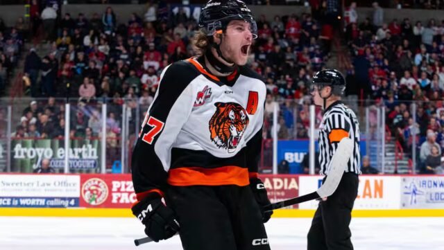 L’espoir du CH, una elección de troisième ronde au repêchage de 2025, a secoué les cordages en tout debut deuxième période face aux Oil Kings d’Edmonton. Les Tigers l’ont finalement emporté 7 à 3.