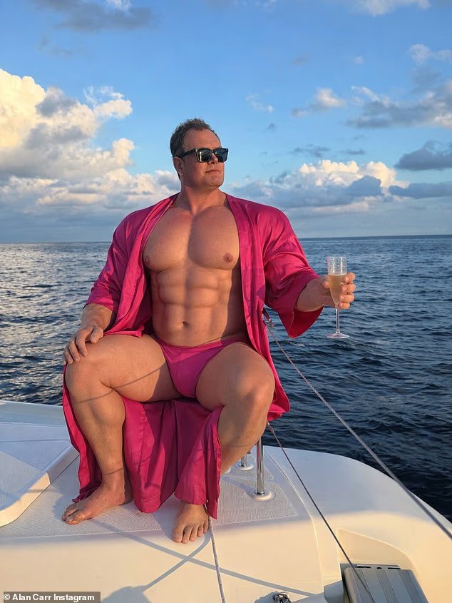 Alan Carr ha compartido una divertida imagen de IA que muestra unos abdominales como una tabla de lavar mientras se relaja en un barco con pequeños Speedos.