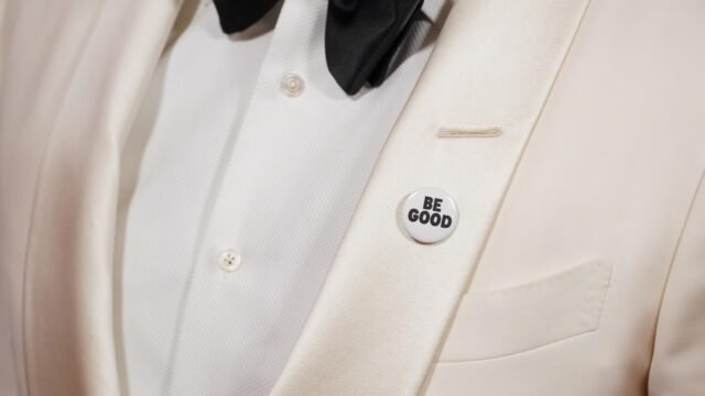 Los pines en blanco y negro mostraban lemas como “SÉ BUENO” y “ICE OUT”, introduciendo un ángulo político en la entrega de premios después de la ceremonia relativamente apolítica del año pasado.
