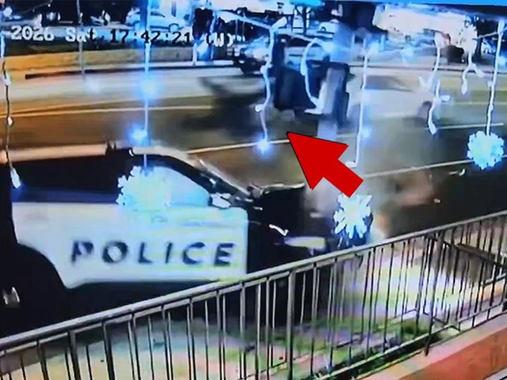 El impacto envía a la víctima volando por el aire mientras aterriza a metros de distancia… mientras la patrulla gira y se estrella contra el poste del semáforo. El oficial aturdido que está dentro se toma unos momentos para recomponerse antes de saltar y correr hacia el hombre herido… otros autos se detienen y un conductor sale para brindar ayuda.
