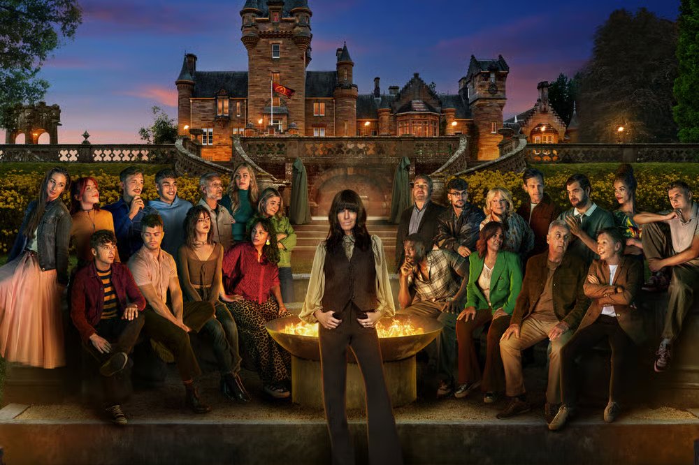 Los concursantes de la cuarta temporada de The Traitors de BBC One, (de izquierda a derecha en la última fila) Rachel, Jessie, Stephen, Faraaz, Maz, Ellie, Harriet, Hugo, Jack, Fiona, Sam, Adam, Roxy, Reece (de izquierda a derecha en la primera fila) James, Matthew, Jade, Netty, Ross, Judy, Ben, Amanda y la presentadora Claudia Winkleman (de pie en el centro) (Cody Burridge/BBC/PA)