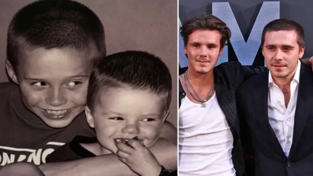 Se puede ver a Brooklyn sonriendo mientras abraza a sus dos hermanos menores, incluido Romeo, de 23 años, en una instantánea de la infancia en tonos sepia.