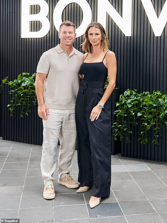 David Warner y su esposa Candice disfrutaron de una rara cita nocturna cuando salieron al Abierto de Australia el domingo.