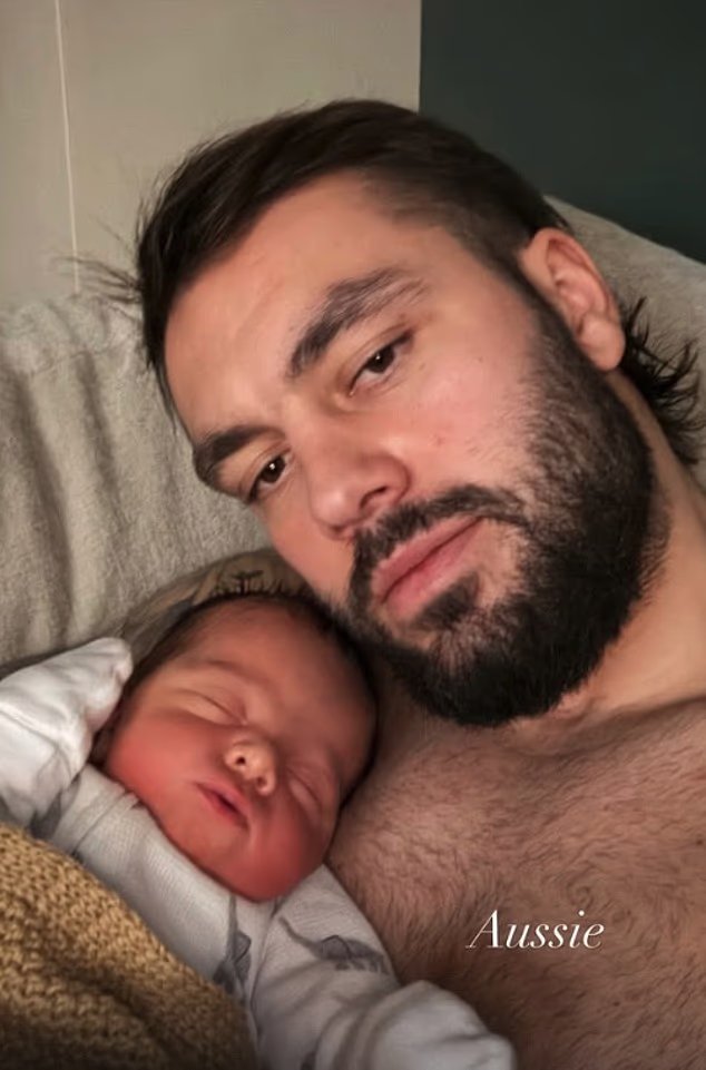 Luego, Finley compartió una foto de sí mismo sin camisa mientras el recién nacido dormía sobre su pecho, junto con una leyenda que revela el apodo del pequeño: ‘Aussie’.