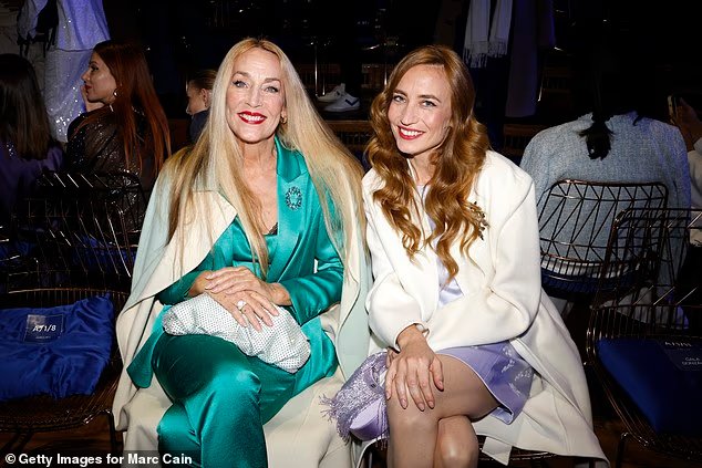 Jerry Corridor se unió a su hija Elizabeth Jagger en el desfile de Marc Cain durante la Semana de la Moda de Berlín el viernes.