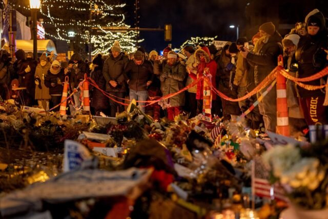 La gente participa en una vigilia en un monumento en memoria de Alex Pretti el miércoles en Minneapolis.
