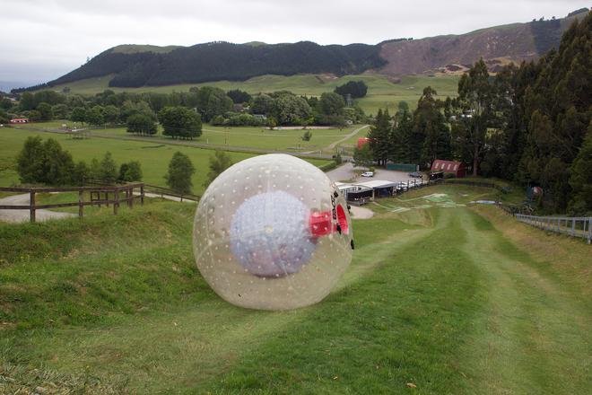 Zorbing es un deporte en el que un ciclista se encuentra dentro de una gran bola transparente y rueda cuesta abajo. La palabra ‘Zorb’ se refiere al orbe y supuestamente al país donde se inició este deporte.