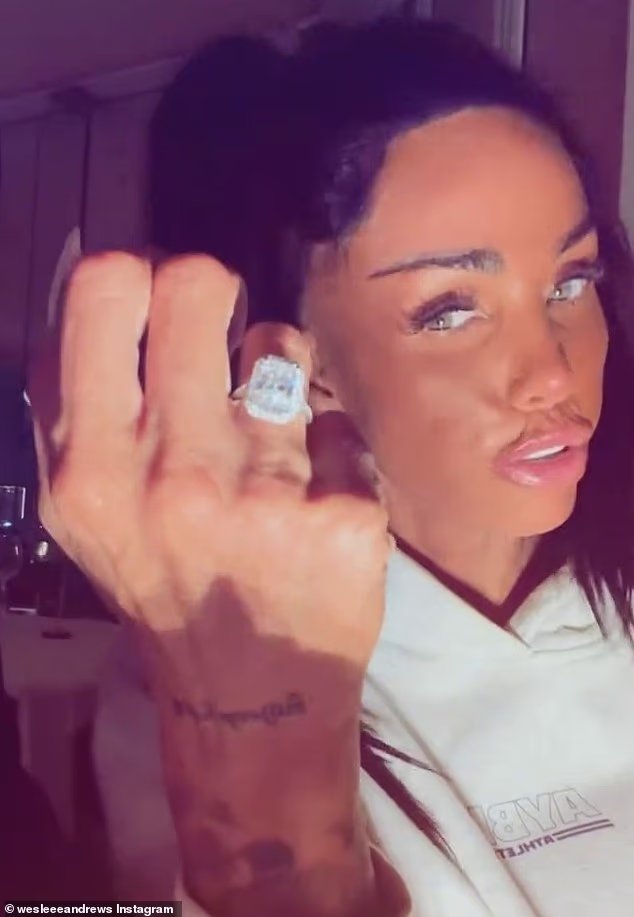 Katie, que también tiene un hijo, Junior, de 20 años, con Peter, reveló en Instagram que ella y Lee Andrews habían celebrado su compromiso con champán, fresas y pastel de chocolate, y subtituló la publicación: “My Richard Gear”. [sic] me arrastró. Manifestarse funciona.’
