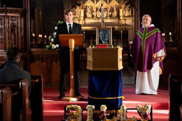 Con los preparativos para el funeral de Billy en marcha, Theo Silverton lucha con su culpa y busca al obispo, quien le sugiere que él no tiene la culpa y que debería hablar con Dios. George Shuttleworth lo deja cuidando a los enterradores por un momento, Theo se acerca al ataúd de Billy y le cube cuánto lamenta haberlo dejado morir. Al oír un portazo, se horroriza al pensar que lo han escuchado. ¿Pero quién fue?