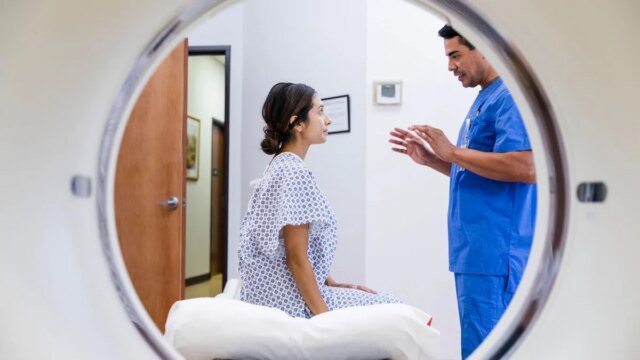 Una joven multirracial se somete a un procedimiento de diagnóstico por imágenes médicas en un hospital de última generación con un simulador de TC. La imagen ilustra el uso de tecnología de vanguardia para la atención médica y el tratamiento en un entorno médico moderno. El retrato destaca la precisión, el cuidado y la sofisticación de las prácticas médicas contemporáneas. (iStock)