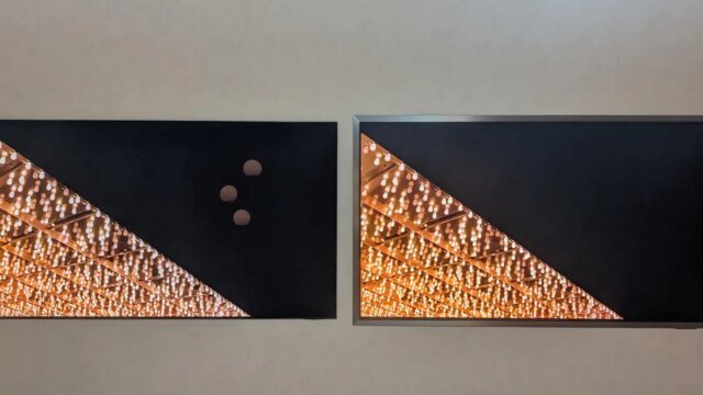 El revestimiento antirreflectante del S95H (derecha) y las luces reflejadas del antiguo S95C (izquierda).