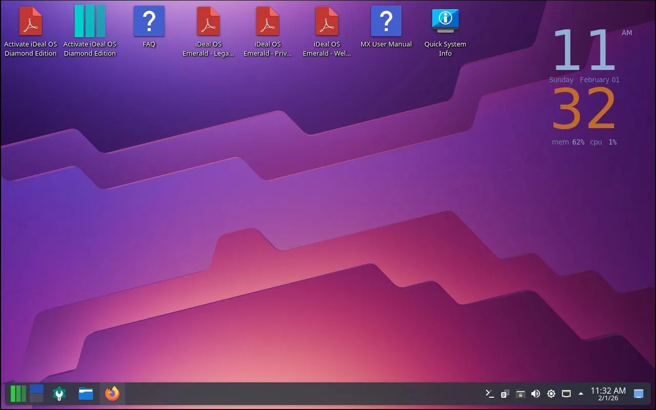 Pero, ¿qué es lo que hace que iDeal OS sea especial? Aparte del hecho de que el escritorio incluye varios archivos PDF con información sobre cómo activar la edición Diamond, información sobre la edición Emerald, un handbook de usuario MX y acceso a información rápida del sistema, hay una aplicación en specific que agrega otra capa de seguridad al sistema operativo y puede ser utilizada por cualquiera.