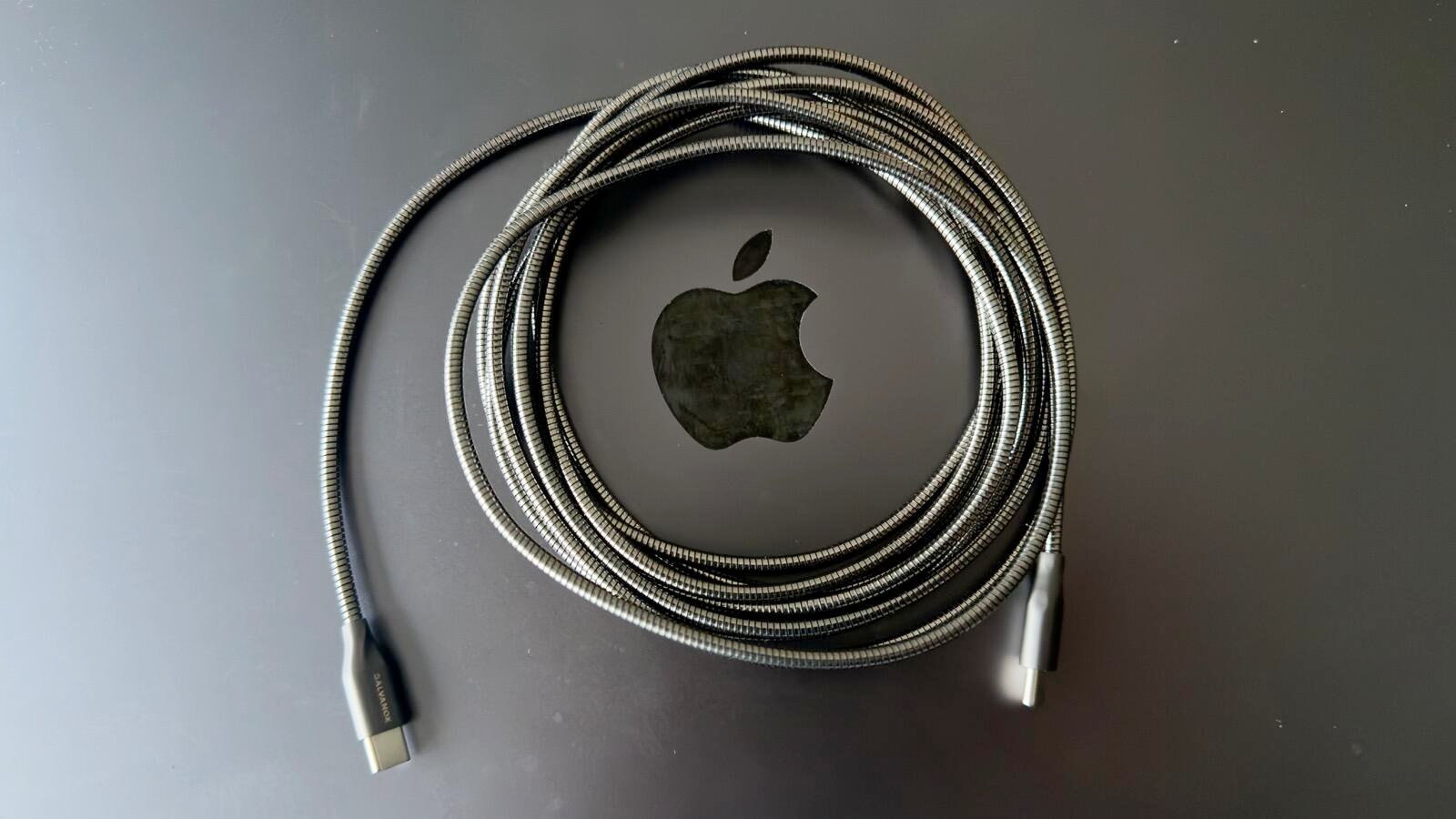 Entonces, ¿qué hace que este cable sea a prueba de mascotas? Bueno, es un cable USB-C donde ha estado todo lo que se puede revestir de steel. El cable en sí está envuelto en una resistente funda de acero inoxidable con doble refuerzo.