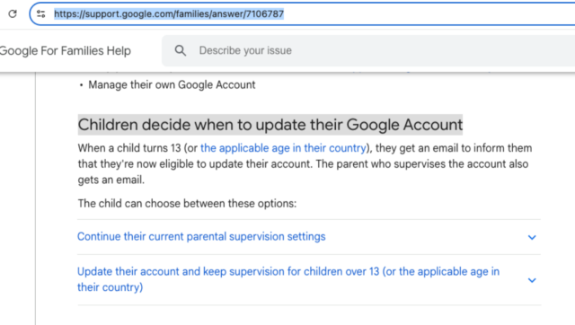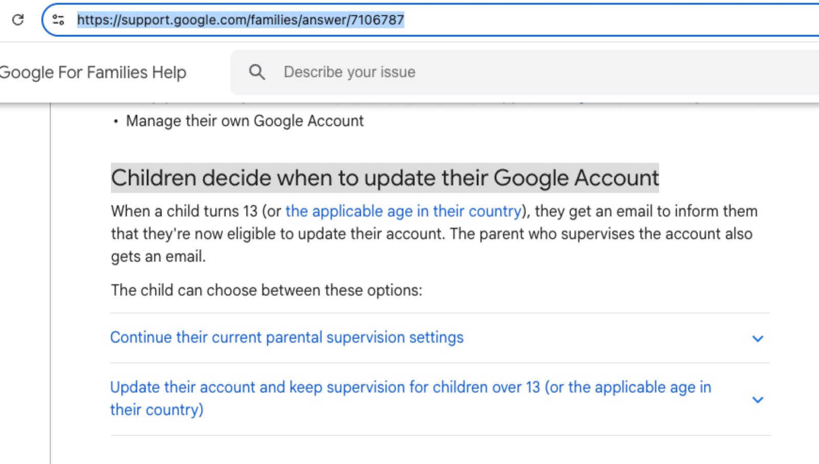 Esta explicación de Google enmarca la decisión de poner fin a la supervisión parental como una elección del niño.