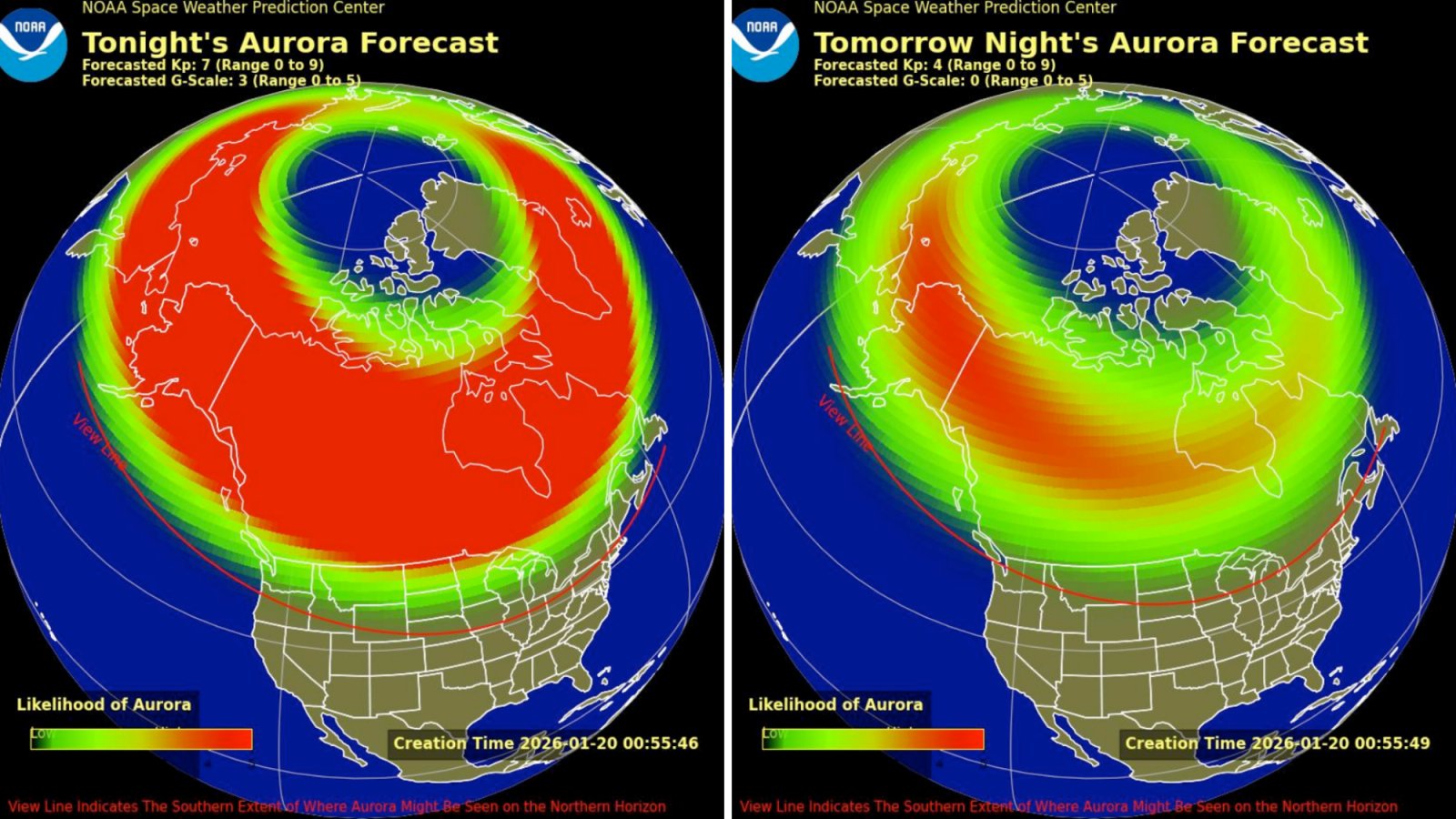 Según la Administración Nacional Oceánica y Atmosférica de EE.UU. (NOAA) Centro de predicción del clima espacial (SWPC), la aurora boreal de esta semana será seen el 19 de enero y permanecerá hasta el día siguiente en algunas áreas. Aun así, si puedes, será mejor que veas la aurora el lunes, ya que será mucho menos prominente más adelante en la semana. Aquellos en latitudes más altas tendrán más posibilidades de ver la aurora, aunque la notable fuerza de la exhibición de esta semana significa que la aurora boreal puede ser seen desde lugares tan bajos como Alabama y el norte de California.