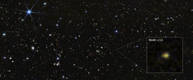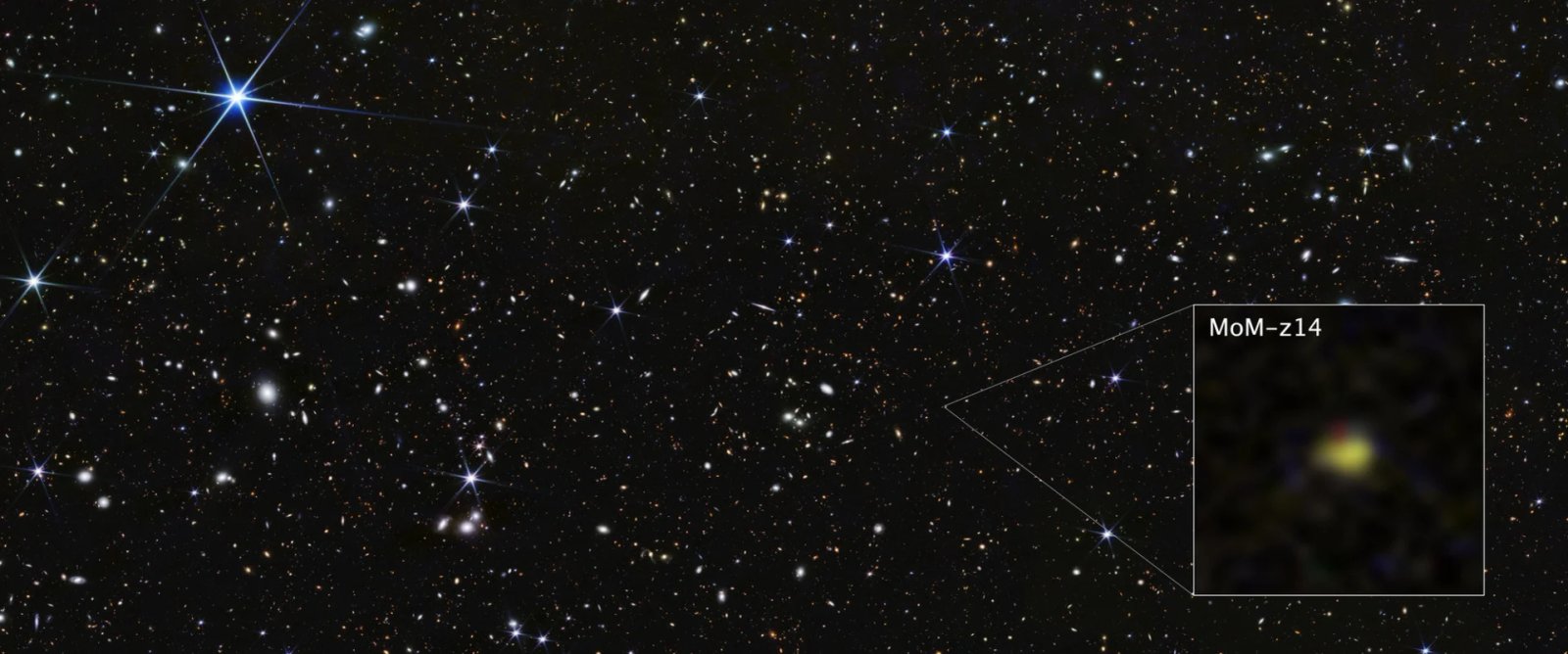 MoM-z14 es sorprendentemente luminosa y se suma a una lista cada vez mayor de galaxias excepcionalmente brillantes encontradas en el universo temprano que son 100 veces más brillantes de lo que predijeron los estudios teóricos. Las observaciones previas de Webb de las primeras galaxias han demostrado que las estrellas que las habitan tienen grandes cantidades de nitrógeno, lo que puede contribuir a su brillo.