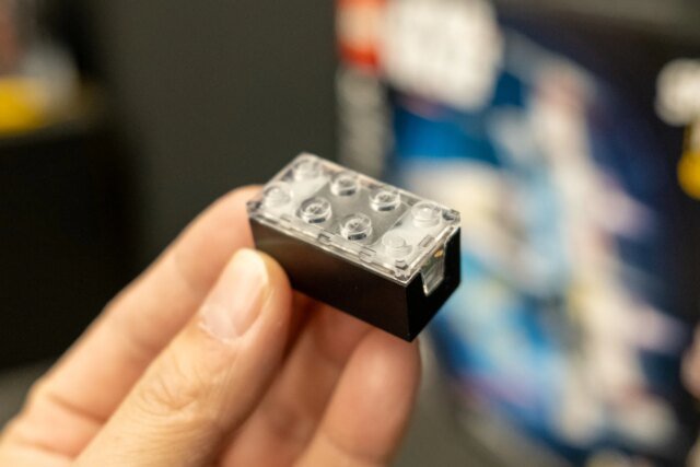 En resumen, el Sensible Brick es la pieza con todos los sensores. Cuando una ficha inteligente o una minifigura con una ficha incrustada en su cuerpo entra en contacto con el Sensible Brick, el 2 x 4 reaccionará. ¿Cómo es eso? Podría emitir sonidos; podría iluminarse; podría detectar movimiento.