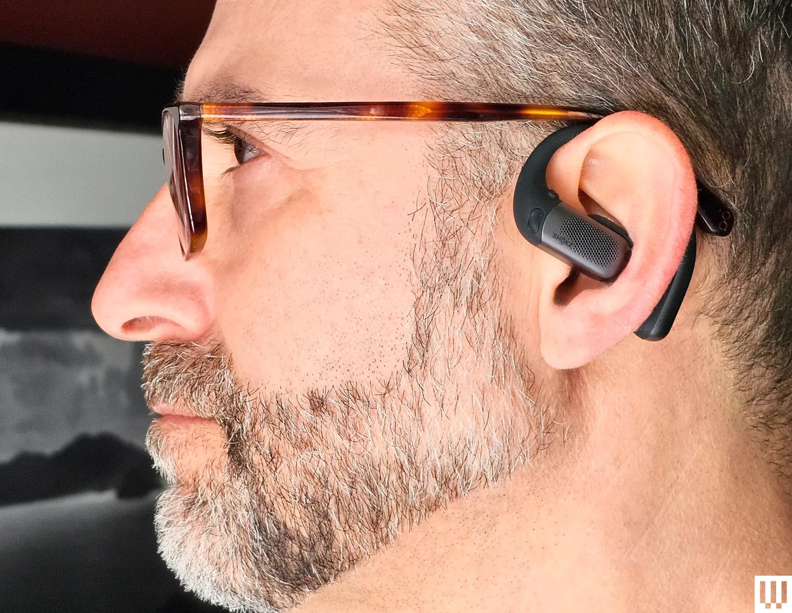 nunca se convirtieron incómodos, pero no es la experiencia de olvidar que los estás usando de los modelos OpenFit/OpenFit 2/+. Como alguien que usa anteojos, tiendo a preferir auriculares con clip como los Shokz OpenDots One y, sin embargo, la forma del gancho para la oreja del OpenFit Professional nunca fue un problema. Shokz incluye un conjunto de bucles de soporte de silicona opcionales, presumiblemente para personas con orejas más pequeñas o que necesitan un ajuste más estable. No mejoraron mi ajuste, pero claro, tengo orejas bastante grandes.