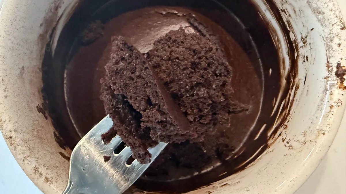 Si bien el resultado fue igualmente delicioso, si no más, ciertamente lleva más tiempo que un pastel en taza estándar para microondas (que se cocina en menos de 2 minutos). Dicho esto, una freidora permitió que se formara un poco de costra y caramelización alrededor de sus bordes, lo que hizo que valiera la pena la espera y fuera superior a su versión para microondas.