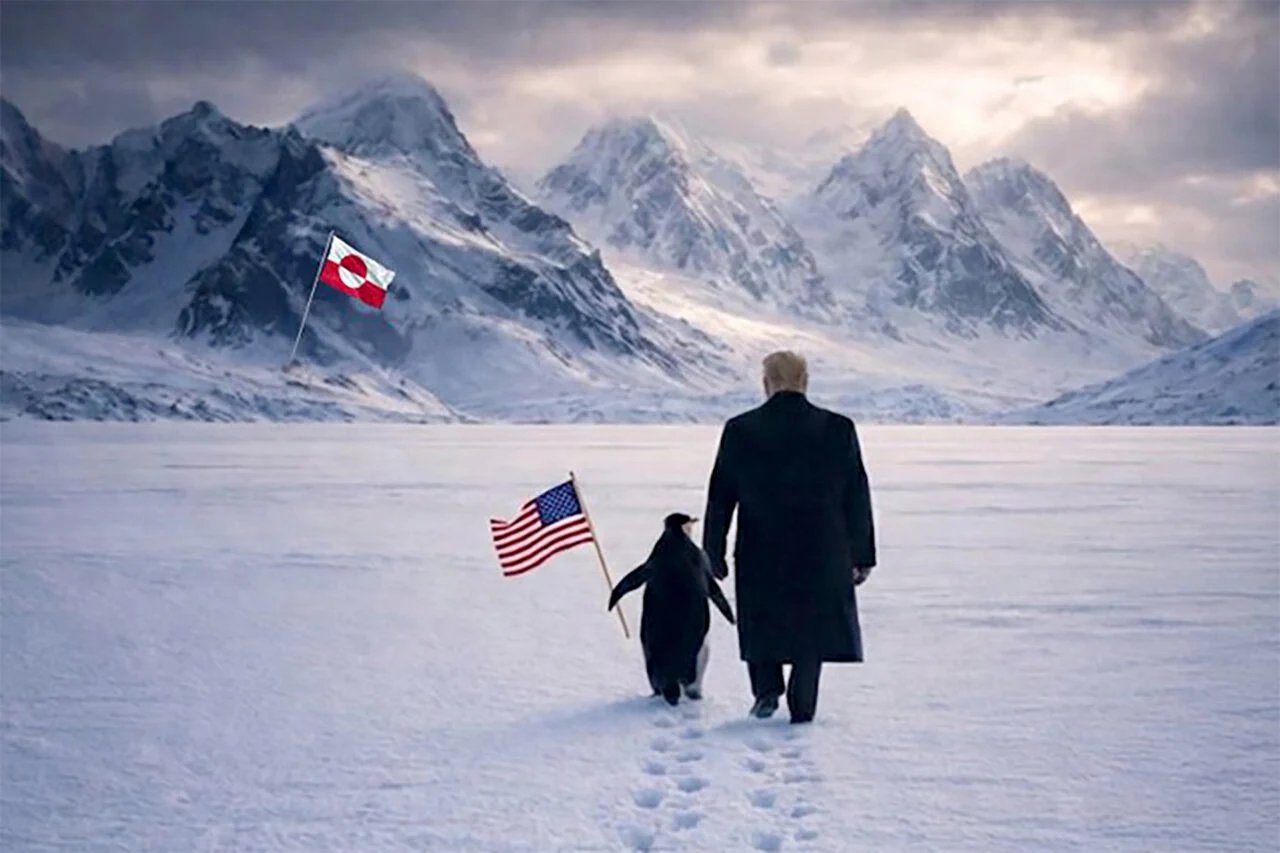 Trump ha sido más explícito sobre la conexión con Groenlandia en otras publicaciones, como una de la cuenta X de la Casa Blanca del 23 de enero que muestra una imagen generada por IA de un pingüino y Trump tomados de la mano. Al fondo aparece la bandera de Groenlandia. El pingüino sostiene una bandera estadounidense mientras se acerca, símbolo de la conquista del país.
